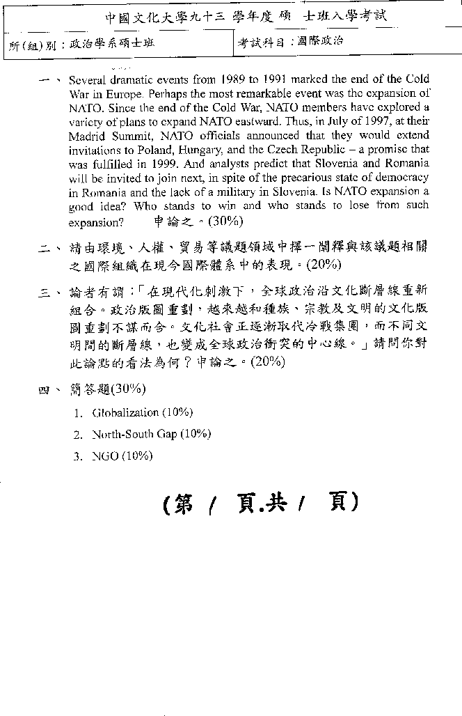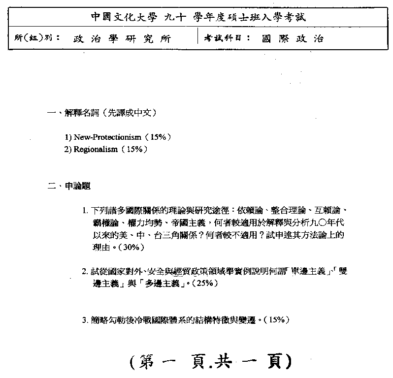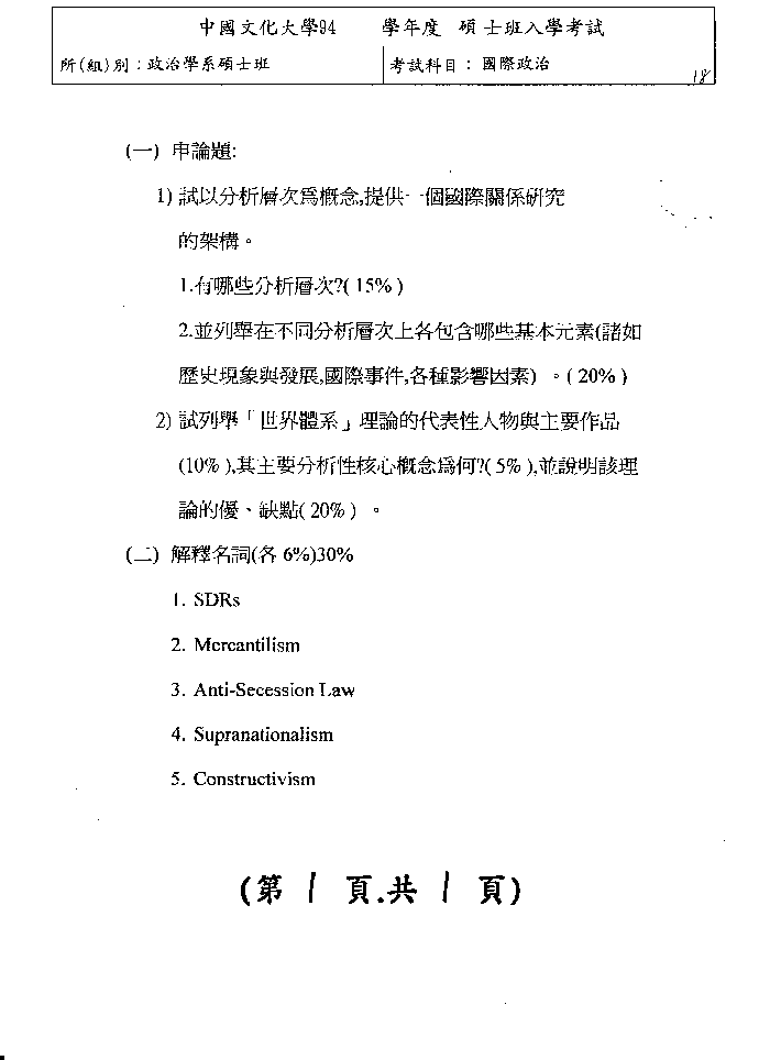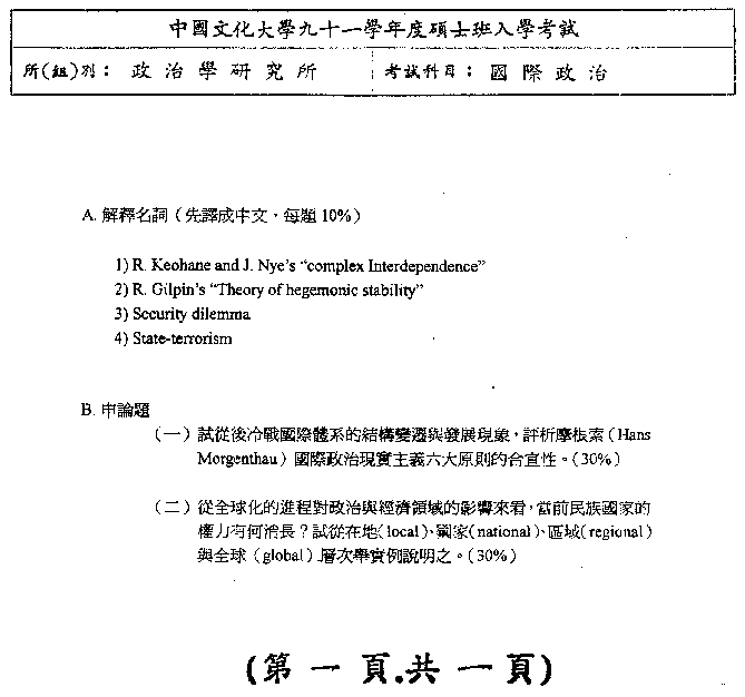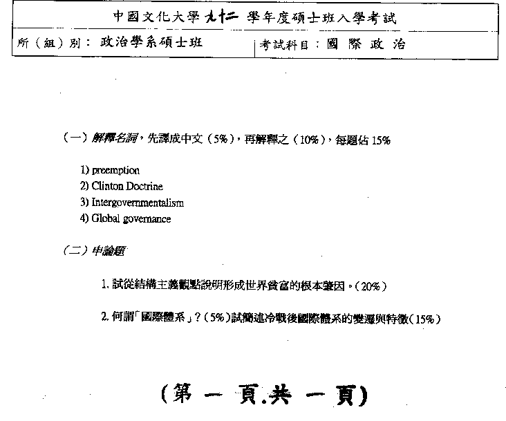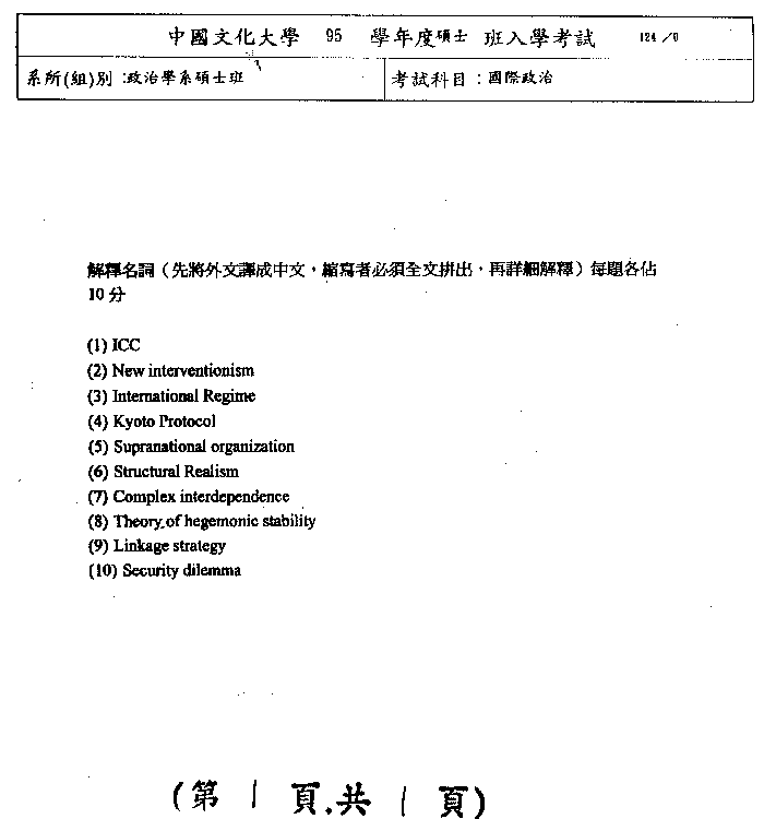 | 國際政治: