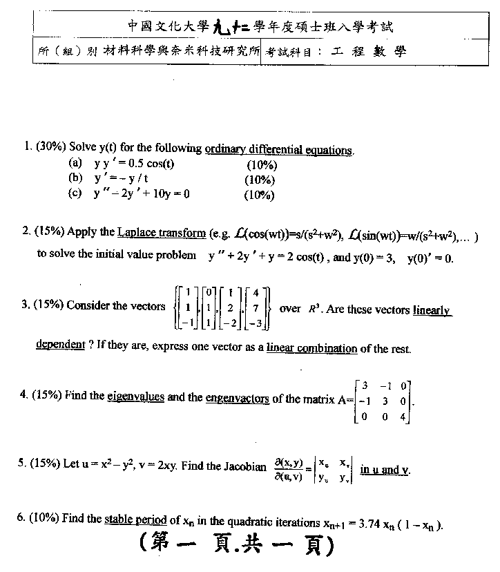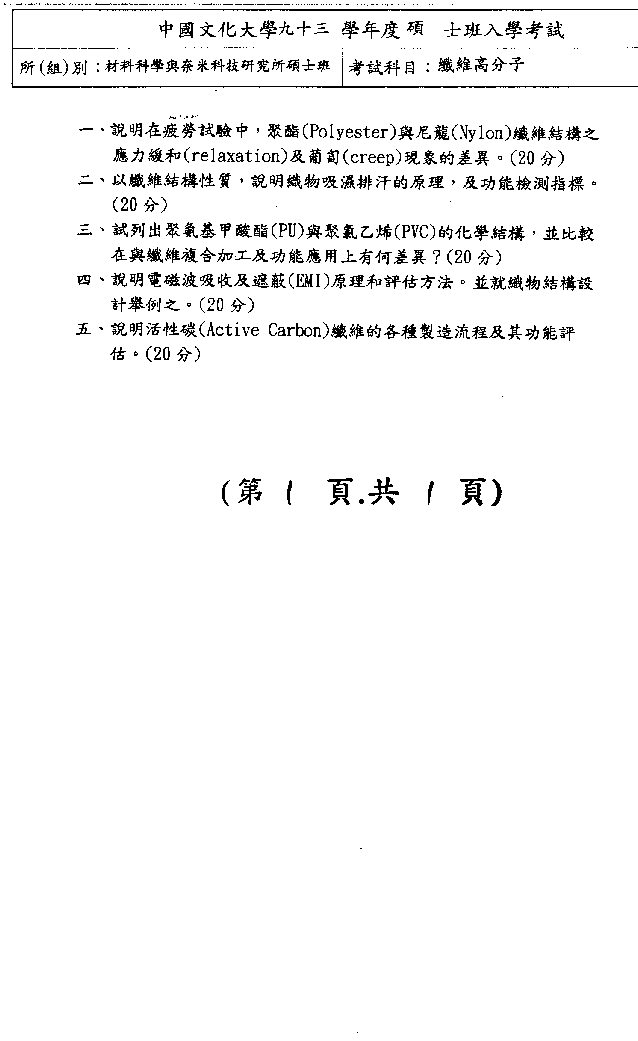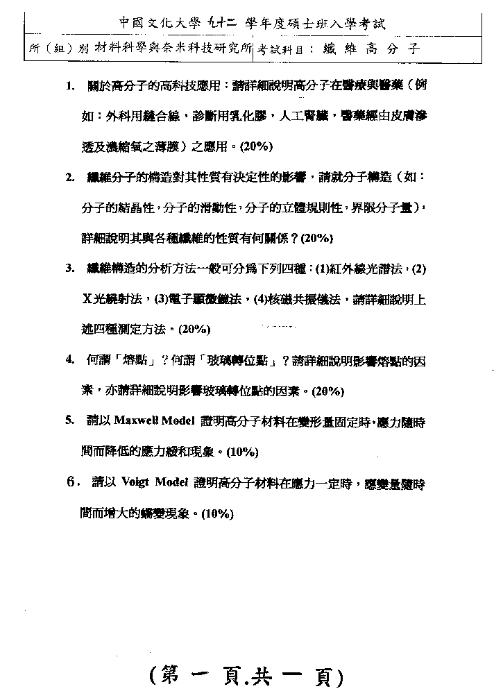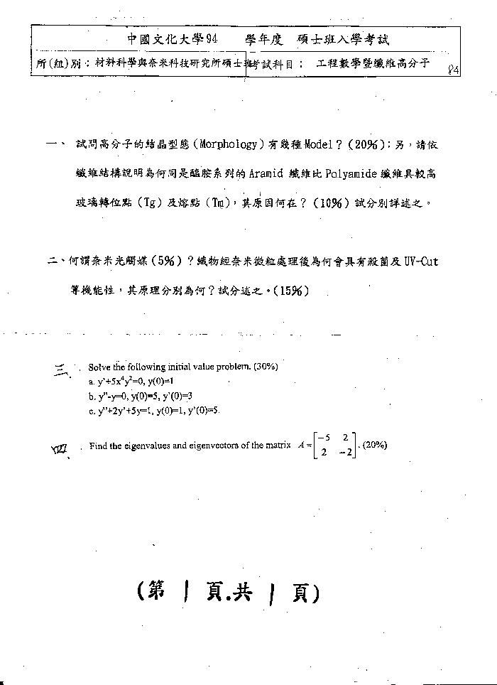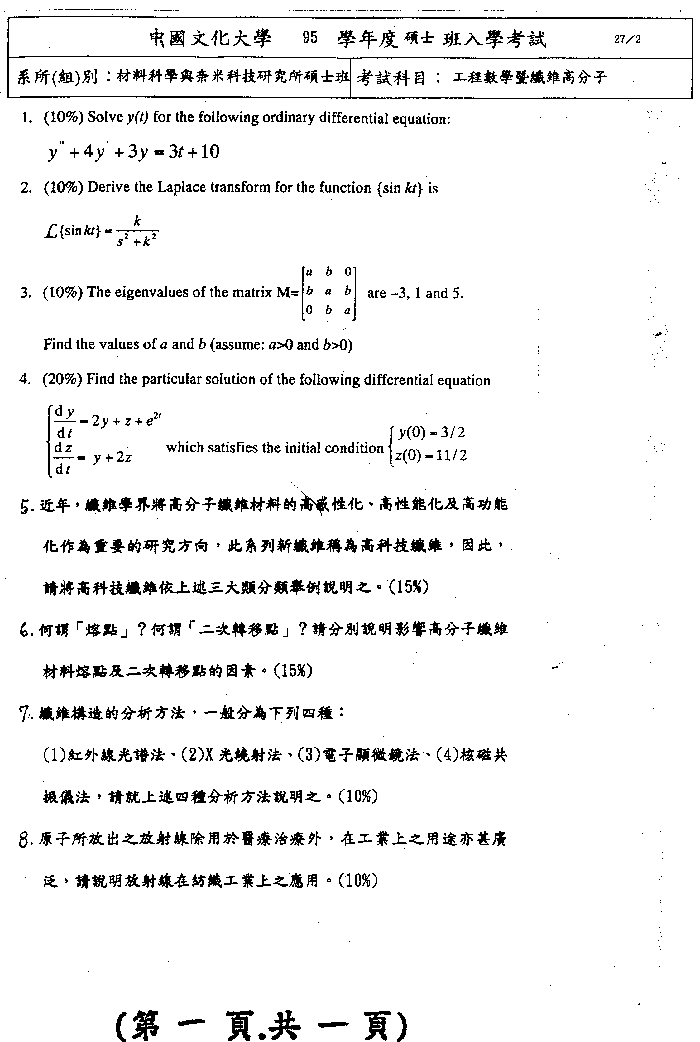 | 工程數學暨纖維高分子: