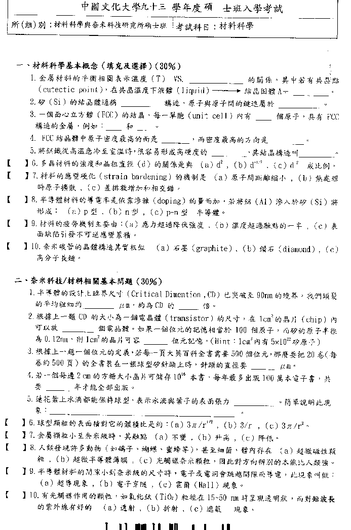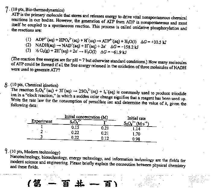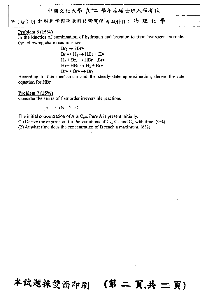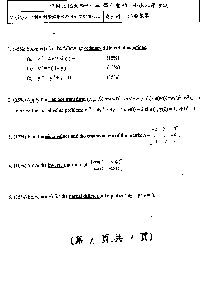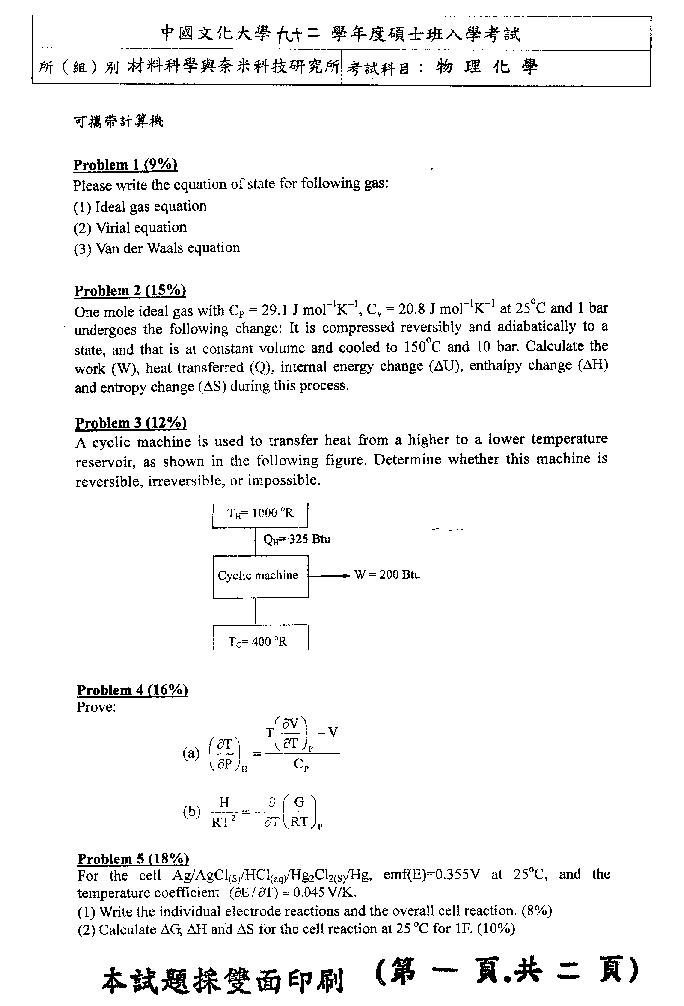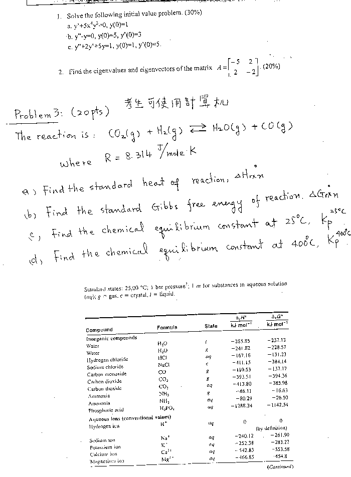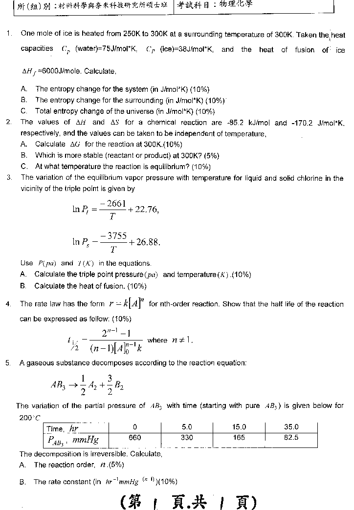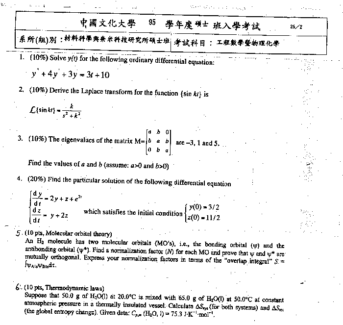 | 工程數學暨物理化學: