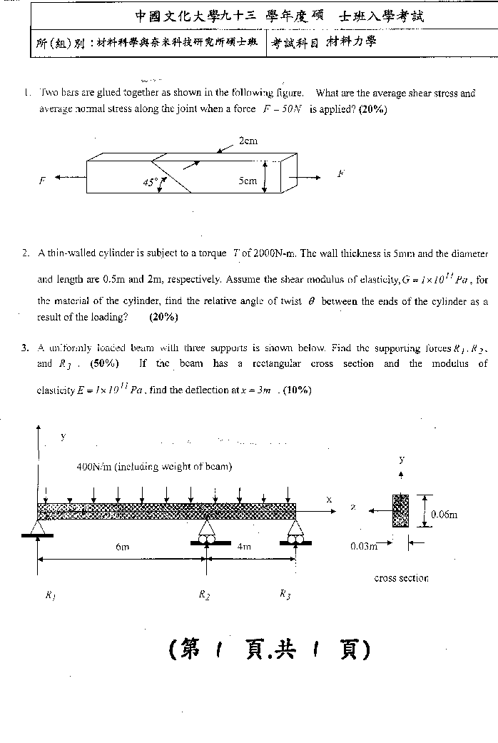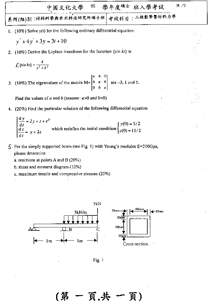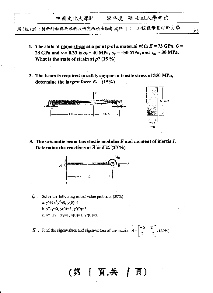 | 工程數學暨材料力學: