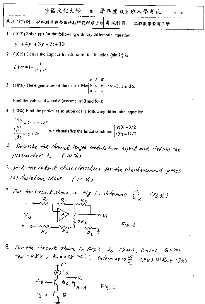 | 工程數學暨電子學: